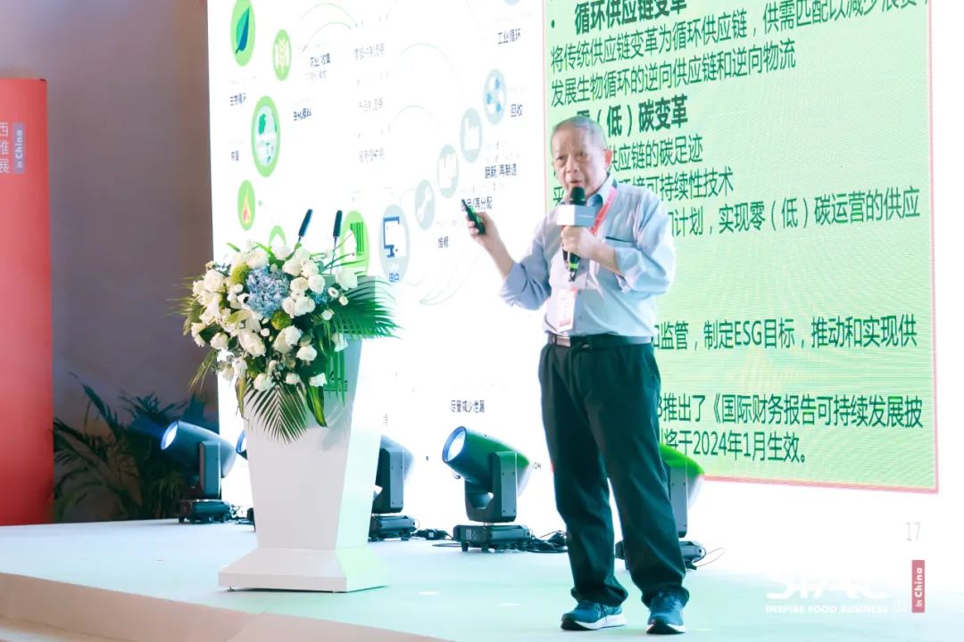 怎样实现数字化和可持续转型?唐隆基表示“有三大变革和一大举措。”其中,三大变革一是数字化转型。他认为优合就做得很好,加大力度投资在数字化上,建立了一些公共系统,进行区块链的追溯系统,这符合现在的发展趋势。二是循环的变革。全球的二大循环中,一个是工业循环,一个是生物循环,食品和食品工业分属两边。最近几年提到的碳排放,双碳目标,行业面临着零碳或者是低碳的变革,是第三个变革。要充分认识食品供应链的碳足迹。