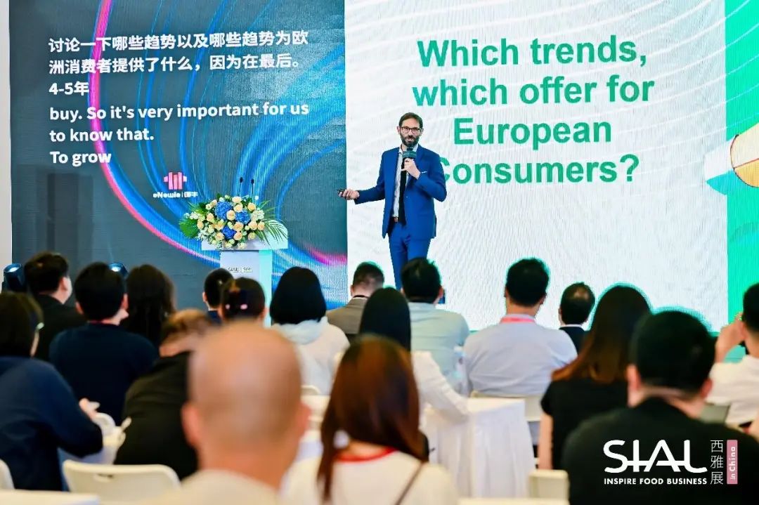 SIAL Network全球营销传播总监Jean-Gabriel Mollard分享了欧洲食饮市场创新趋势。欧洲消费者通过食饮寻求快乐、健康、实惠和生活的意义,他们对食饮的期待主要体现在味道、品质等方面,要求透明度、价值和可持续性。因此,食品供应必须更具包容性、更个性化。