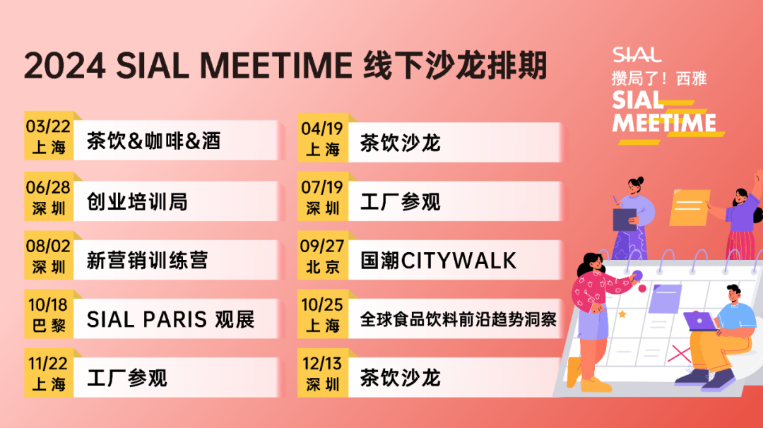 【SIAL Meetime 攒局了!西雅】是我们面向食品行业的全新主题系列沙龙活动,每一期以不同形式主题活动召集食品、饮料、餐饮行业从业者参与,在轻松愉悦的氛围中获取行业知识,结交新的伙伴,开拓更多潜在商机。